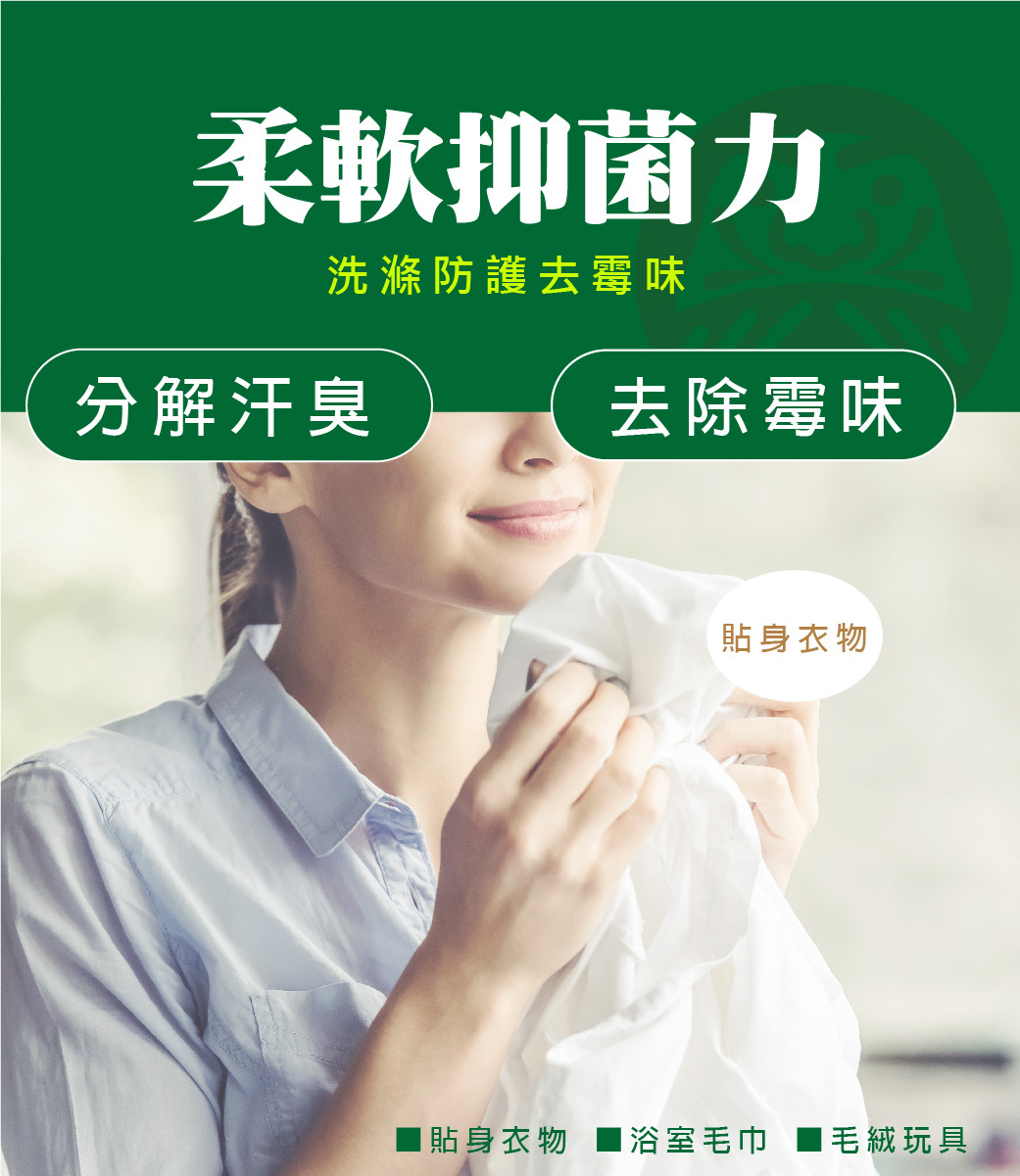 • 分解纖維裡隱藏臭味分子與霉味,保持衣物清香。