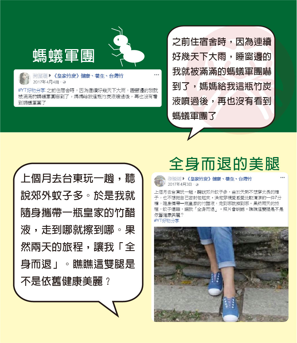 • 竹醋液可抑制黴菌生長,舒緩搔癢不適,分解異味。