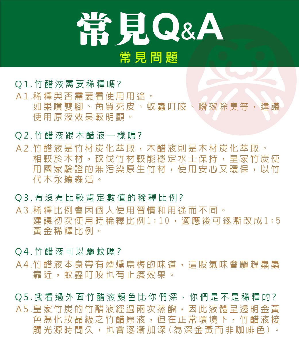 Q5.我看過外面竹醋液顏色比你們深,你們是不是稀釋的?