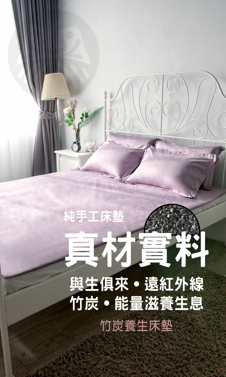 ●床墊內墊層為100%純竹炭原粒製成之手工床墊,釋出之竹炭效能量也相對高。