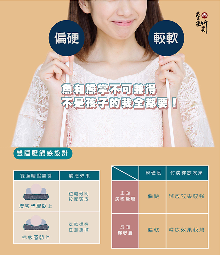 ●竹炭舒眠枕採兩面枕頭不同睡壓觸感設計