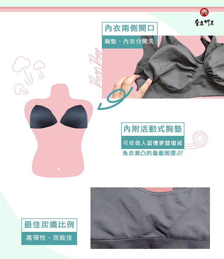 ●竹炭纖維布製成,除可釋放遠紅外線,其抑菌除臭、排汗透氣性佳外,其舒適度讓您穿的舒適,也不擔心衣物易有靜電問題。